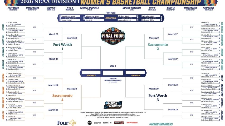 2026 NCAA women's basketball tournament: Bracket, schedule, scores