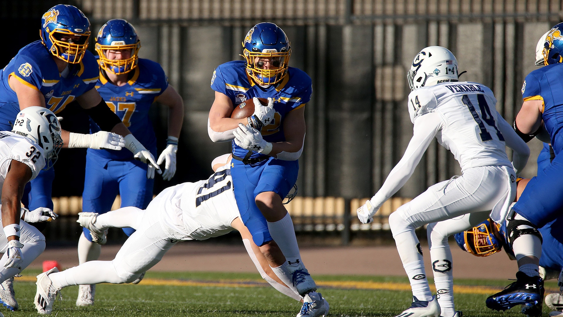 South Dakota State's Isaiah Davis entered the 2021 season as a freshman All-American but missed a significant portion of the season with an injury. When he did play, he split carries with fourth-round NFL draft pick Pierre Strong Jr. However, when Davis was on the field it was electric.