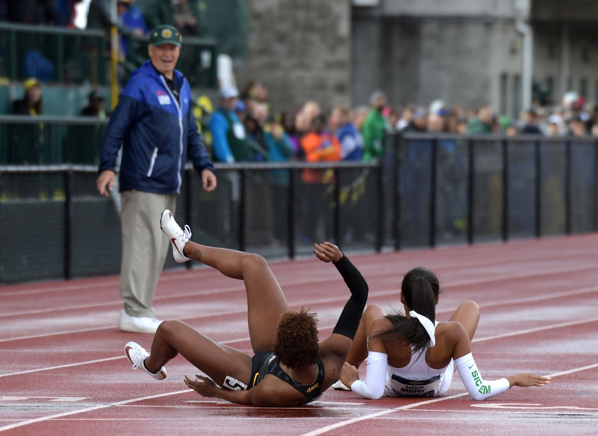 Elsewhere in the 4x400 field were the Oregon Ducks after setting an NCAA championship record in the event just one year prior, finishing with a time of 3:23.13.