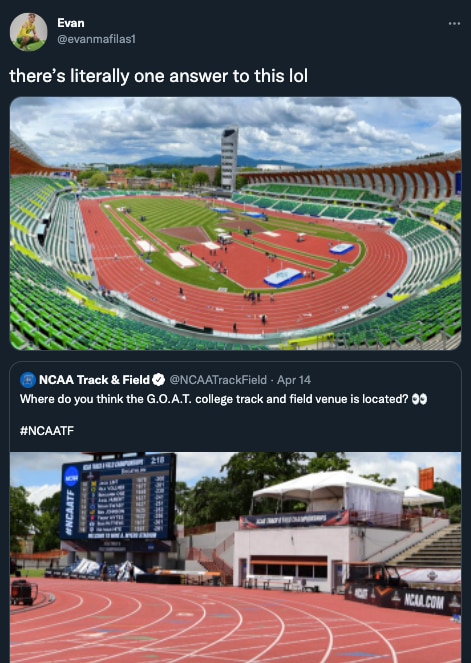 Many agreed that the atmosphere at Hayward Field is unmatched. However, there was also mention of Oregon's weather and how the possibility of rain and/or wind can take away from athletes' top performances, especially at championships.