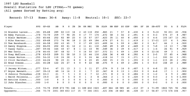 LSU baseball's record 1997 season by the numbers