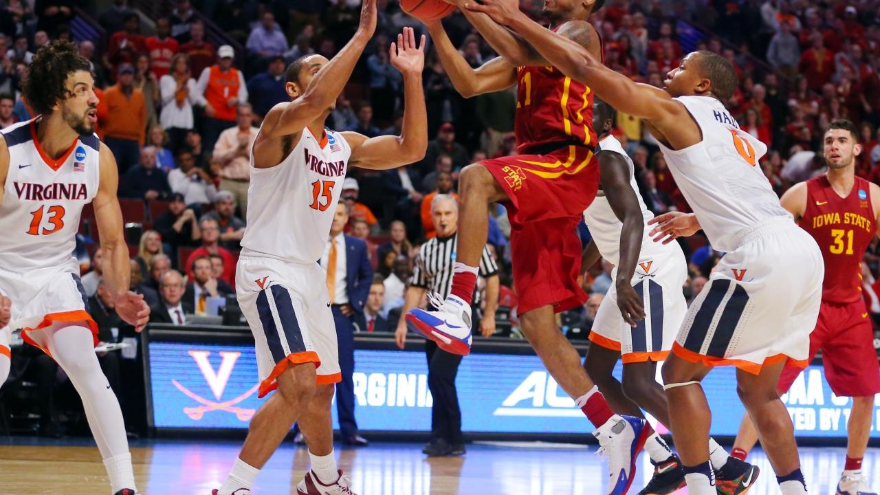 Morris’ stock and trade is his quick first step. He also has an ability to finish with both hands, in addition to what some might so endearingly call the "playground dribble". Case in point, in this example from last year’s Sweet 16 matchup against Virginia, Morris runs one of the signature features of the Iowa State attack.