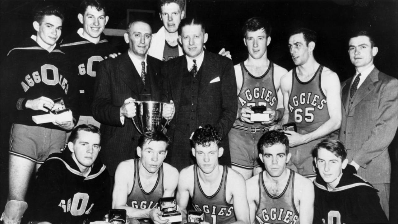 Bob Kurland (back row, fourth from left) was named the 1945 NCAA Tournament Most Outstanding Player.