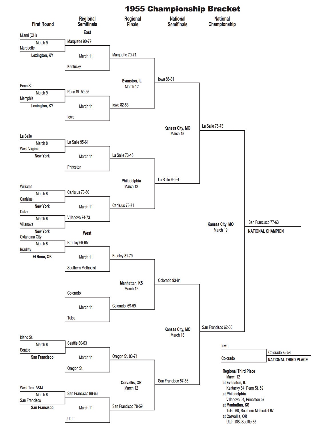 This is the 1955 NCAA tournament bracket.