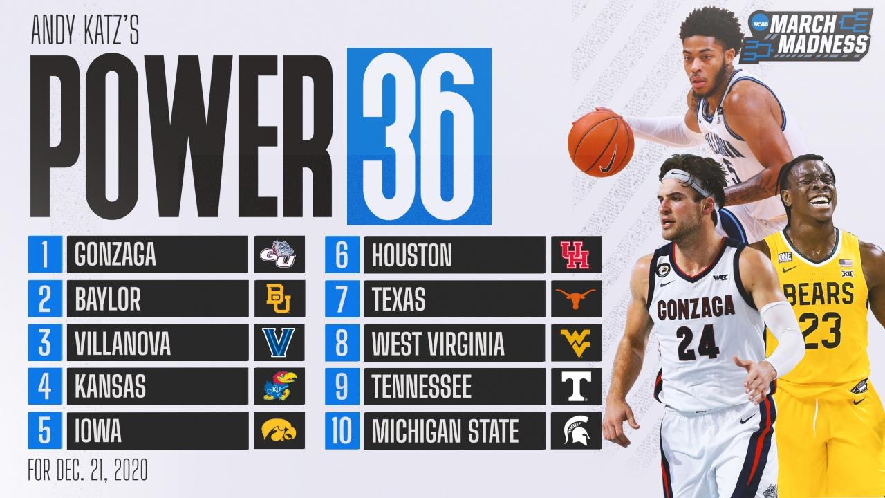 Gonzaga is undefeated and ranked No. 1 in the AP poll and in Katz's Power 36 rankings, but the 'Zags aren't without room to improve. In fact, their 3-point shooting (29.1 percent) ranked 244th nationally through Dec. 14.