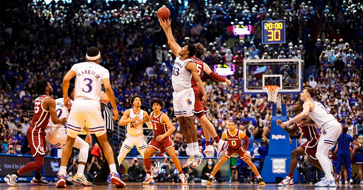 Oklahoma controlled most of the first half, posting a pair of eight-point leads, before going into halftime up 34-31 on the road. However, an early second-half run in which Kansas' Christian Braun, Jalen Wilson and David McCormack outscored Oklahoma 13-5 over the span of two and a half minutes, the Jayhawks took a 46-45 lead, their first since they were up 11-9.