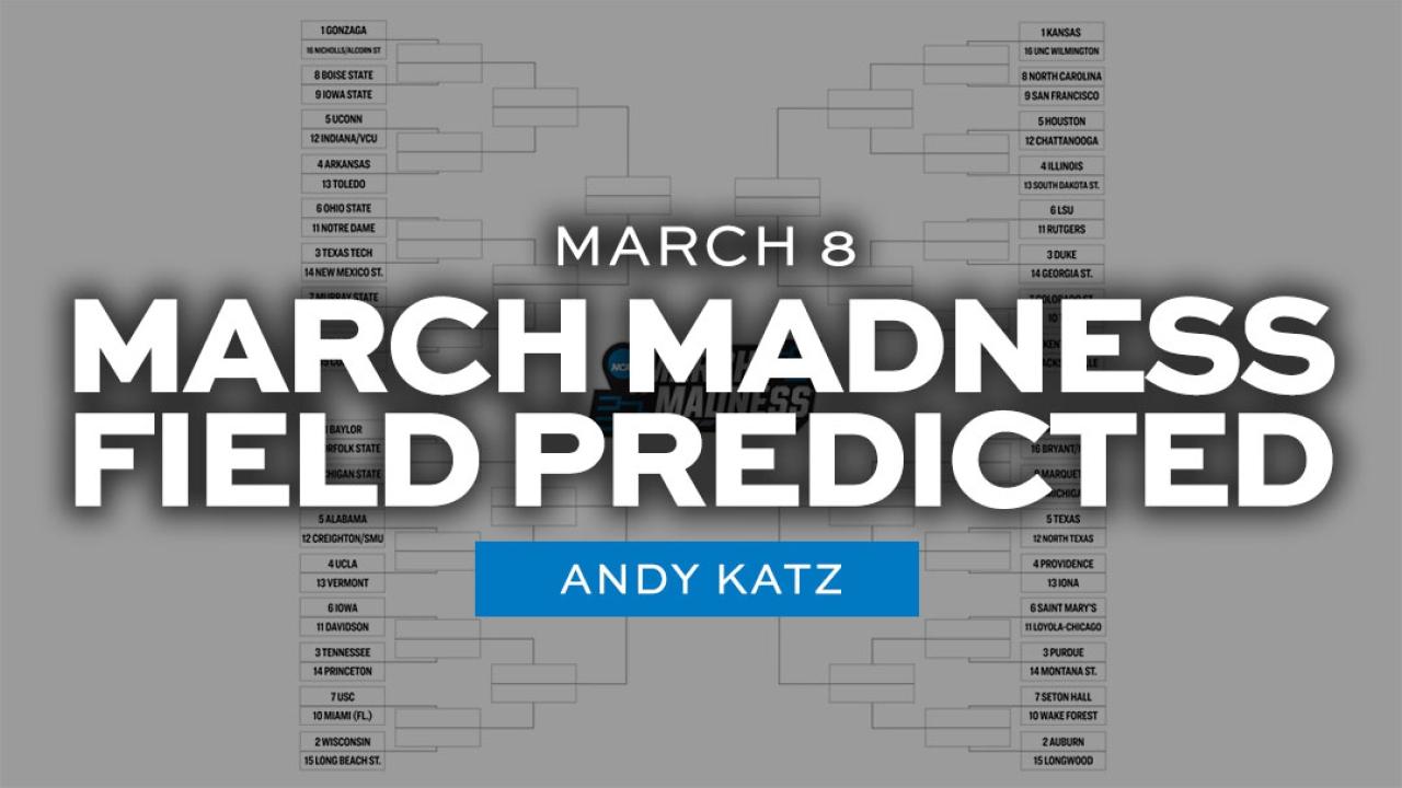 As of Tuesday, March 8, we are only five days away from Selection Sunday and the Madness has already begun. With some automatic qualifiers having already clinched their bids and other conference tournaments just beginning, March Madness correspondent Andy Katz has updated his projections for the 2022 NCAA men's basketball tournament.