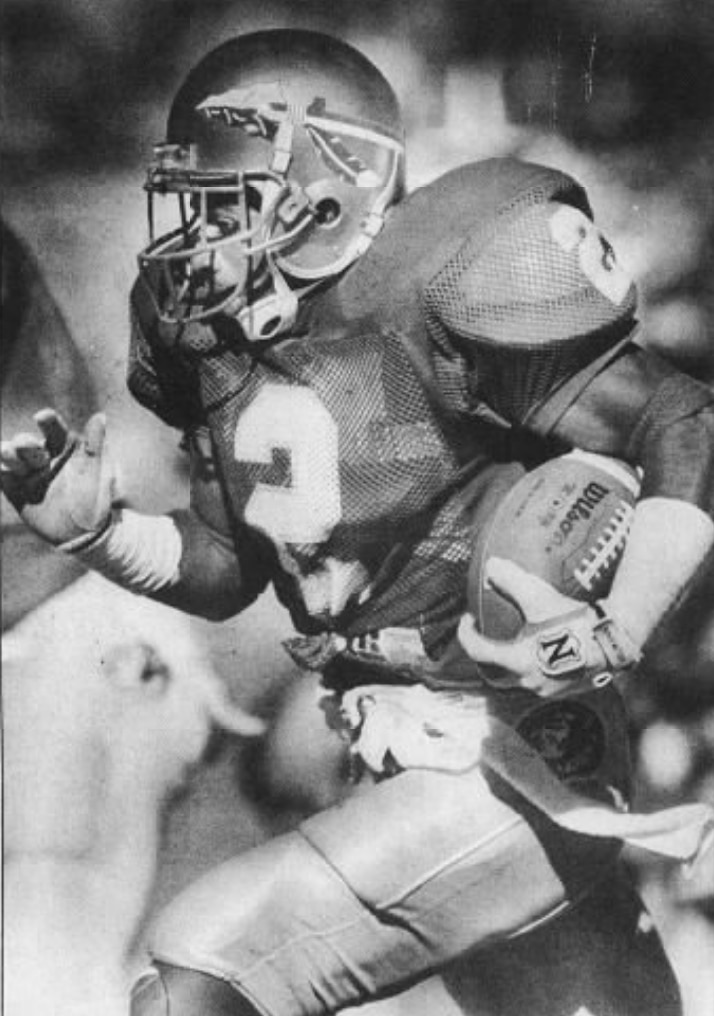 "Sanders intercepted a [Steve] Gage pass at the goal line early in the fourth quarter and raced a school-record 100 yards to score," reported the Fort Lauderdale News. "It was a well-deserved touchdown because Sanders, a freshman, had returned punts 37 and 34 yards to set up scores earlier."